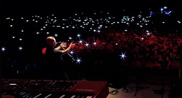 David De Mata en el escenario junto a David Lebón, Gillespi, Juanchi Baleirón y Marciano Cantero.